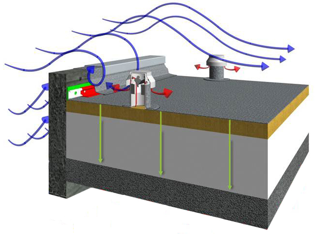 Vårt system för vakuumtak är också perfekt för byggnader med hög luftfuktighet, som t.ex. simbassänger, bryggerier osv. Om fukt fastnar i takkonstruktionen kan vakuumtaksystemet hjälpa till att ventilera den.